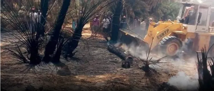 وحسب المصادر، فقد دامت عملية إخماد الحريق التي تجندت لها كافة السلطات وسخرت لها إمكانيات بشرية ومادية لساعات نتيجة هبوب رياح بالمنطقة، ومن جهتها مصالح الأمن المختصة إقليميا فتحت تحقيقا في الحادث لمعرفة ملابسات نشوبه. وناشد فلاحو الواحات المتضررون من هذا الحريق ومواطنو الإقليم الجهات المعنية والسلطات المحلية والولائية بمساعدتهم بإعادة الاعتبار لحقولهم الفلاحية بعد هذه المحنة التي أتت على جل النخيل المثمرة بواحة قصر ساهل.
