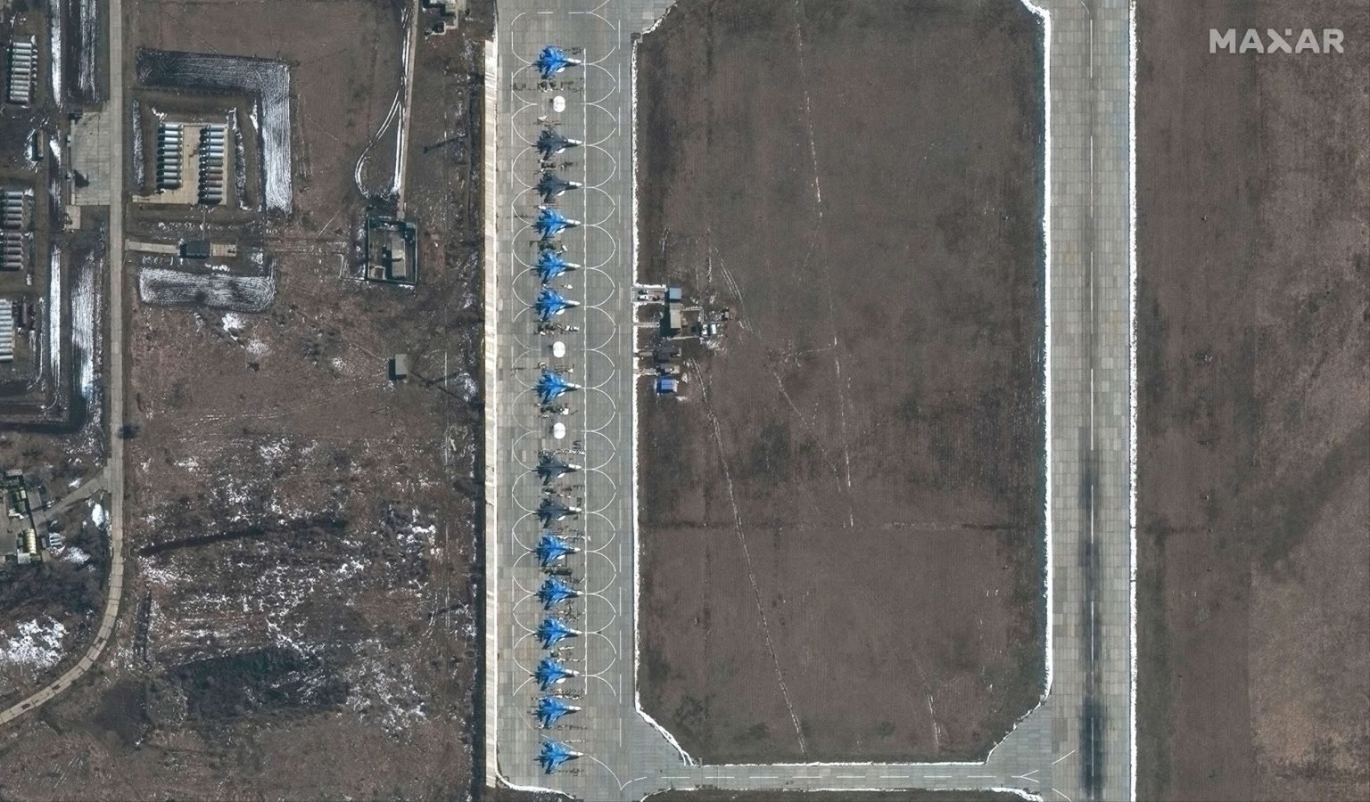 كشفت صور بالأقمار الصناعية أن روسيا تحشد عسكريا على الحدود الأوكرانية، وأظهرت الصور نقل روسيا طائرات حربية إلى شبه جزيرة القرم والقواعد القريبة من أوكرانيا إلى حد أكبر مما تم الكشف عنه سابقًا، مما يزيد من قدرتها على التخويف السياسي أو التدخل العسكري، بحسب ما نشر موقع قناة الحرة الأمريكية.