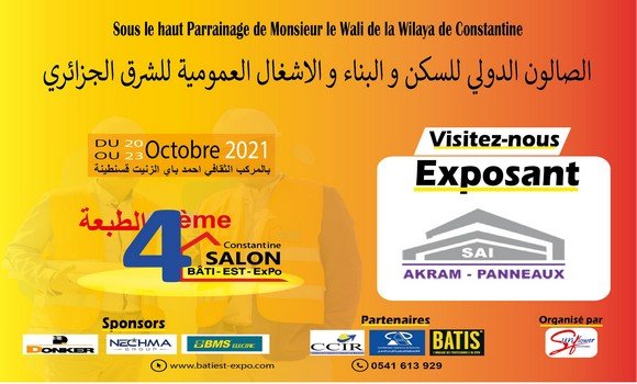 وقد شارك في الطبعة الرابعة لهذا الصالون 104 عارضين يمثلون مؤسسات وطنية عمومية وخاصة تنشط في مجالات البناء والأشغال العمومية وذلك بهدف الترويج للمنتوج المحلي الخاص في البناء.