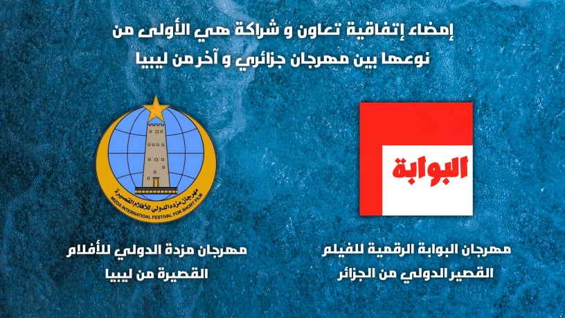 ابرم أمس، مدير ومؤسس مهرجان البوابة الرقمية للفيلم القصير الدولي بعنابة ورئيس مهرجان مزدة الدولي للأفلام القصيرة بليبا المخرج رمضان المزداوى، اتفاقية تعاون وشراكة بهدف ترسيخ ثقافة الصورة وتشجيع للإبداع الفني عند الشباب وخاصة في ما يتعلق بصناعة الأفلام وتجسيد للبرنامج المسطر من طرف الهيئتين.