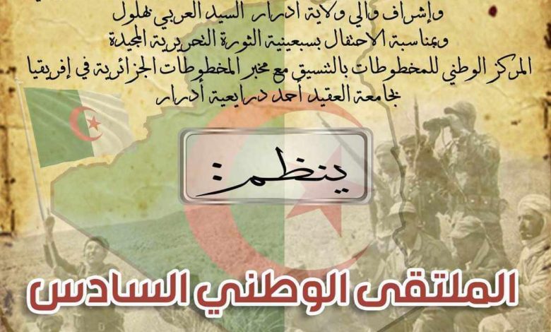 ينظم المركز الوطني للمخطوطات بأدرار، بالتنسيق مع مخبر المخطوطات الجزائرية بإفريقيا يومي 10/11 ديسمبر 2024 الملتقى الوطني السادس بعنوان “المخطوطات الجزائرية والكتابات التاريخية “، بجامعة العقيد أحمد درايعية أدرار، ذلك احتفالا بالذكرى السبعين المخلدة للثورة التحريرية المجيدة.
