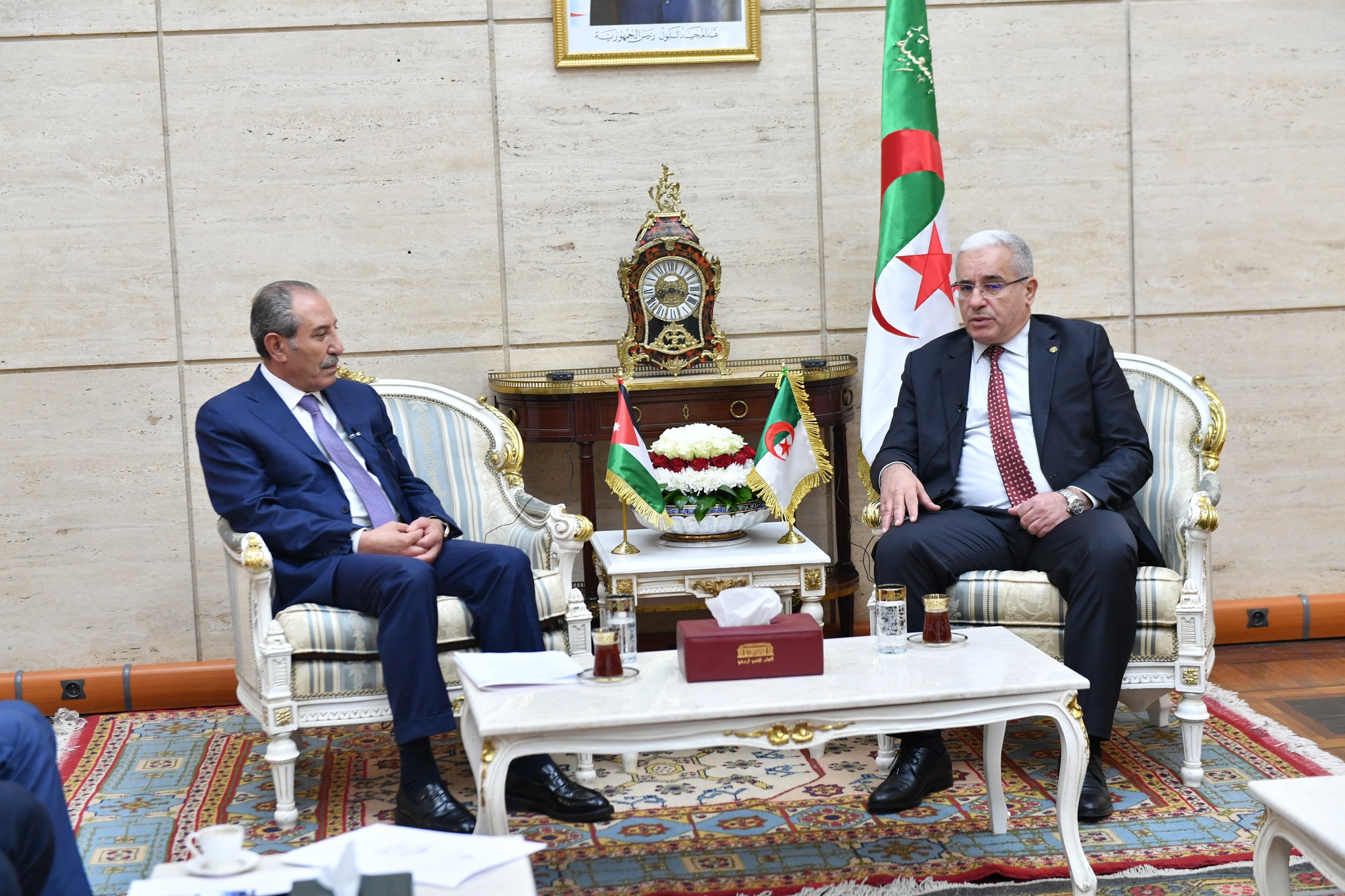 تناول اللقاء واقع العلاقات الثنائية المتجذرة في التاريخ وسبل تطويرها في شتى المستويات وبالأخص على الصعيدين البرلماني والاقتصادي وثمن بالمناسبة مخرجات اللقاء الذي جمع رئيس الجمهورية السيد عبد المجيد تبون والعاهل الأردني عبد الله الثاني شهر ديسمبر الأخير.