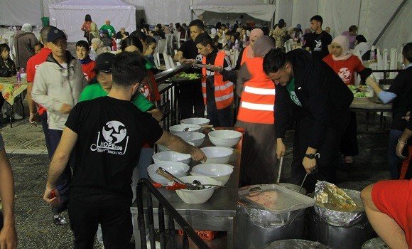 واختارت جمعية “أمل الجزائر Hope DZ”، نصب خيمتها التطوعية التي تتربع على مساحة 1500 متر مربع وبطاقة استيعاب ما بين 1300 – 1400 شخص، لاستقبال أكبر عدد ممكن من الصائمين، فقبيل آذان المغرب بدقائق تجمع بين جنباتها عائلات، عابري سبيل، عمال، وكل من حالت مشاغلهم دون الالتحاق بمنازلهم للإفطار.
