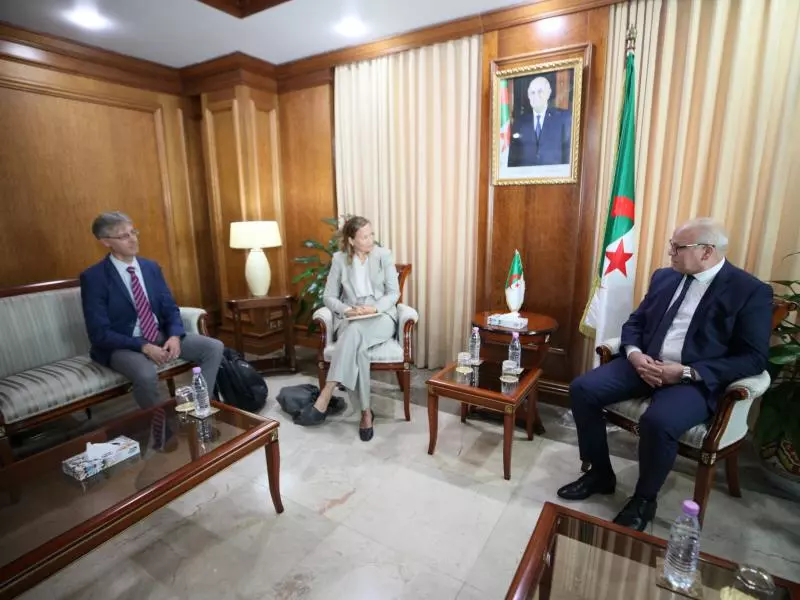 وجرى اللقاء بمقر الوزارة، بحضور رئيسة التعاون الإنمائي بالسفارة الألمانية، هانا إيلج، وإطارات من القطاع، وذلك على هامش فعاليات معرض التجارة البينية الإفريقية 2025 المنظم بالجزائر العاصمة من 4 إلى 10 سبتمبر.