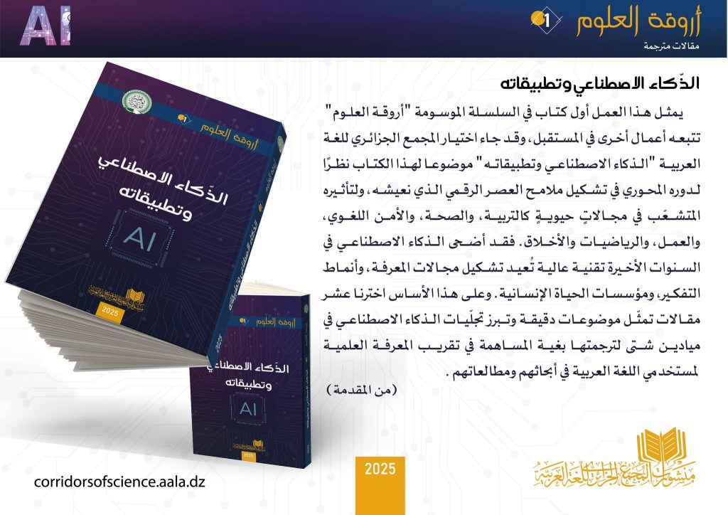 أصدر المجمع الجزائري للغة العربية كتابا عن الذكاء الاصطناعي وتطبيقاته، وهوبمثابة مقالات حديثة ترجمها أعضاء لجنة الترجمة للمجمع عن اللغتين الانجليزية والفرنسية، الأساتذة عمر لحسن وصالح خنور وشاركهم في ذلك الخبير رامي بووذن والأستاذة سهيلة مريبعي برئاسة الأستاذة سعيدة كحيل.