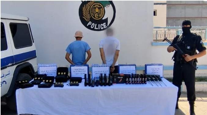 وأفاد بيان الأمن الوطني، أن العملية مكنت من ضبط وحجز مجموعة معتبرة من مختلف الأسلحة البيضاء المحظورة كانت معدة للبيع بطريقة غير مشروعة. وتمثلت المحجوزات في 6 مسدسات صاعق كهربائي و18 خرطوشة خاصة بها، 7 صواعق كهربائية متعددة الوظائف، 8 قارورات رذاذ مسيلة للدموع و4 عصي حديدية. وبعد الانتهاء من جميع إجراءات التحقيق أنجز ضدهما ملفات قضائية عن حيازة أسلحة بيضاء محظورة بدون مقتضى شرعي لغرض البيع بطريقة غير مشروعة قدما بموجبها أمام الجهات القضائية المختصة إقليميا أين تم إيداعهما الحبس بمؤسسة إعادة التربية.