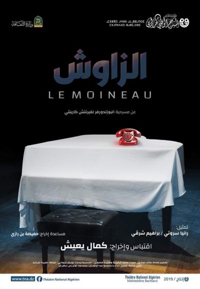 يحتضن عشية الغد المسرح الوطني محي الدين بشطارزي، ثالث أجدد انتاجاته لهذا الموسم، بعد مسرحية “جي بي أس” للمخرج محمد شرشال”، و”راجعين راجعين” للمخرجة حميدة آيت الحاج وهي مسرحية “الزاوش” التي اقتبسها وأخرجها كمال يعيش، وجسدها ركحيا كل من رانيا سيروتي التي تعود لجمهورها بعد غياب دام لسنوات، والممثل إبراهيم شرقي.