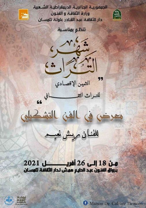 من جهتها كشفت دار الثقافة عبد القادر علولة تلمسان وبذات المناسبة عن تنظيمها لمعرض في الفن التشكيلي للفنان “ريش نعيم” من 18 إلى 26 أفريل الجاري، وذلك برواق الفنون عبد الحليم همش لدار الثقافة تلمسان، كما أشارت الدار بضرورة احترام الإجراءات والتدابير الوقائية من فيروس “كوفيد -19”.