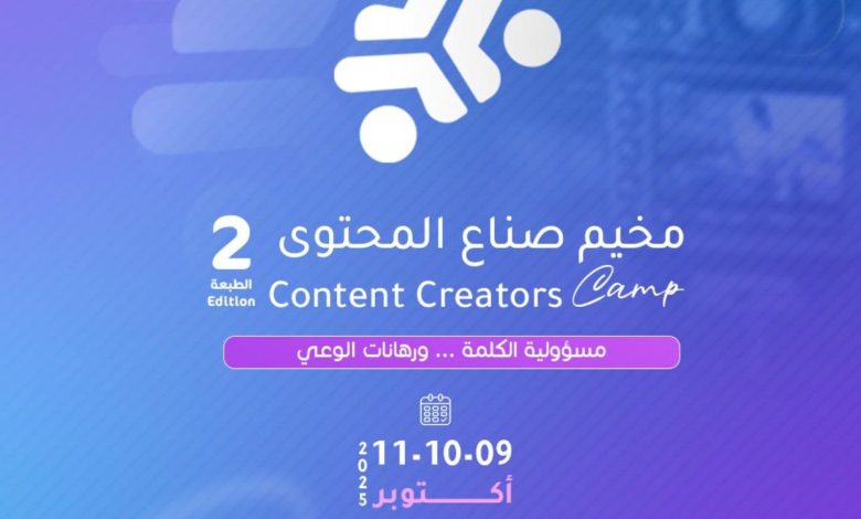 ويعد هذا المخيم، وفق المصدر ذاته، منصة شبابية للإبداع والتدريب وفرصة عملية لتأطير المواهب على مدى ثلاثة أيام، حيث سيشهد مشاركة عدد من القامات الإعلامية الوطنية والدولية إلى جانب المؤثرين الشباب.