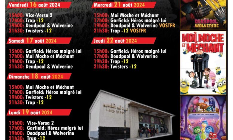 أعلنت مؤسسة فنون وثقافة لولاية عن عرض أحدث الأفلام السينمائية الهوليودية موجهة لعشاق الفن السابع بأحدث تقنيات البث الرقمي، ذلك في الفترة الممتدة من ال16 إلى غاية 22 أوت الجاري بالتنسيق مع شركة توزيع الأفلام MDciné.