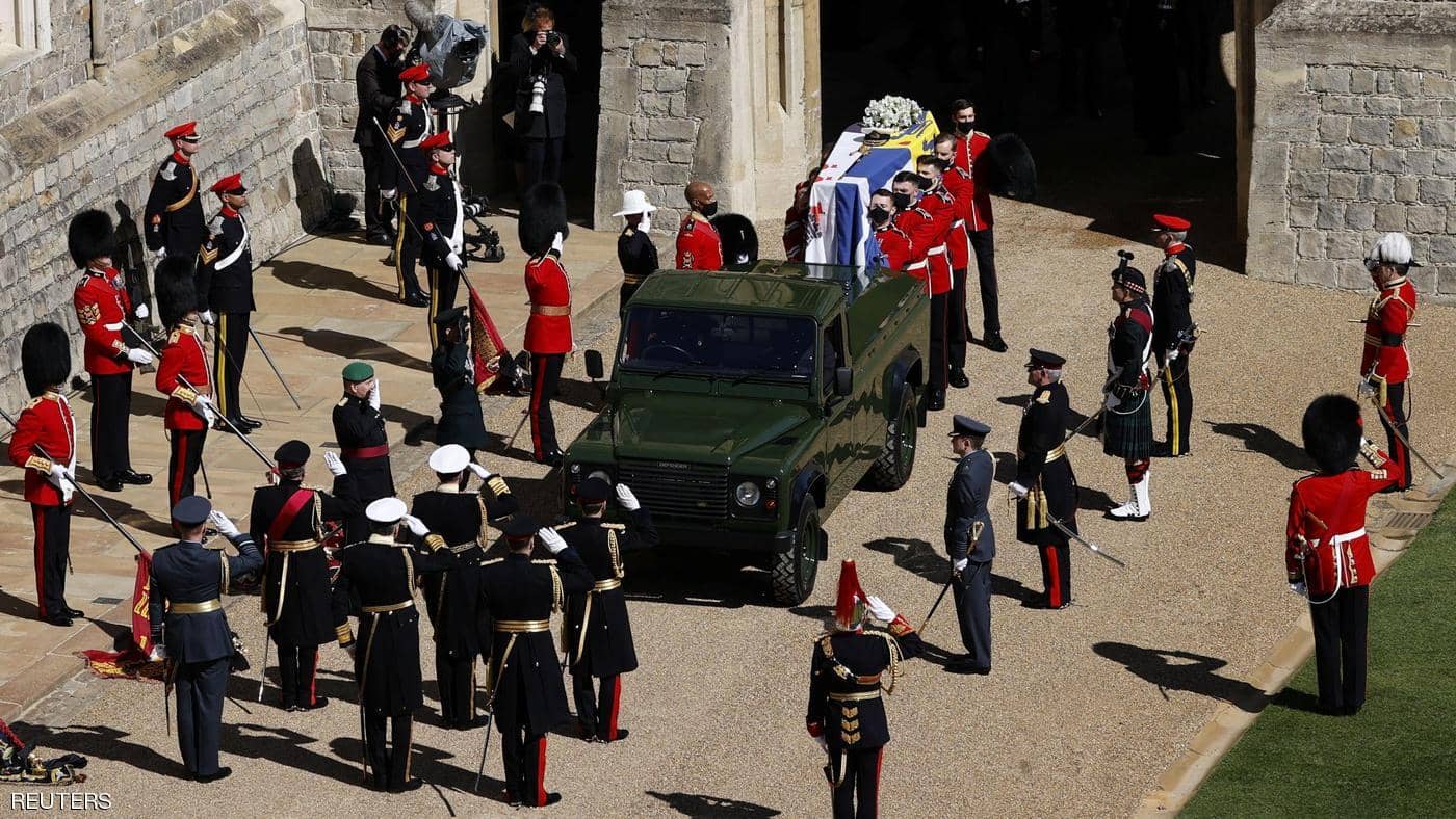 وسعت إليزابيث دائما إلى أن تكون قدوة للأمة خلال فترة حكمها الطويلة، وبالتالي وضعت الكمامة كما هو مطلوب في إنجلترا بموجب القواعد المصممة لإبطاء تفشي كوفيد-19. وبدأ الأمير فيليب رحلته الأخيرة اليوم السبت على متن سيارة لاند روفر معدلة خصيصا، وتبعه سيرا على الأقدام موكب من كبار أفراد العائلة المالكة ومنهم تشارلز ووليام وهاري، بحسب رويترز. وتبعت الملكة إليزابيث الجنازة في سيارتها بينما كان النعش محمولا على سيارة “ديفندر” مصممة حسب الطلب باللون الأخضر العسكري. وتقام مراسم الجنازة في كنيسة سان جورج.