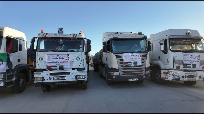 انطلقت مساء الثلاثاء من ولاية توقرت قافلة تضامنية محملة بمساعدات مختلفة لفائدة سكان قطاع غزة بفلسطين المحتلة. وتضم القافلة ما لا يقل عن 13 شاحنة كبيرة الحجم محملة بكميات معتبرة من المساعدات من مختلف المواد الغذائية والطبية والأفرشة والأغطية وغيرها من المساعدات التي تم جمعها بإشراف مصالح الولاية وبالتنسيق مع قطاع التضامن والنشاط الاجتماعي واللجنة الولائية للهلال الأحمر الجزائري.
