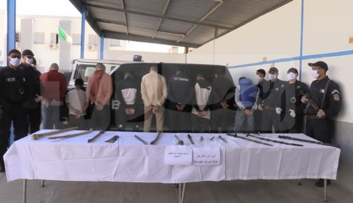 وأفضت إجراءات البحث والتحري إلى توقيف المتسببين والمقدر عددهم بـ 11 شخصا مشتبه فيهم مع ضبط واسترجاع أداة الجريمة ومجموعة من الأسلحة البيضاء المستعملة في المشاجرة والمقدر عددها ب29 سلاحا أبيضا منها بندقية صيد بحرية و سيوف تقليدية الصنع و سكاكين من الحجم الكبير و المتوسط و الصغير وعصا خشبية, وفقا لخلية الاتصال.