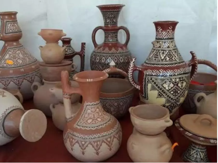 وتميّز المعرض المنظم بمتوسطة “محمد أونار” بمدينة معاتقة، بتنوع منتجات صناعة الفخار التقليدي التي تم تشكيلها يدويا بعناية كبيرة من مادة الطين الممزوجة بمادة التيف أو الرمل، وتحرق في النار باستعمال حطب شجرة التين خصيصاً، كما تتميز هذه الأواني التقليدية بألوان طبيعية ورموز ذات معانٍ كثيرة ترسم عليها.