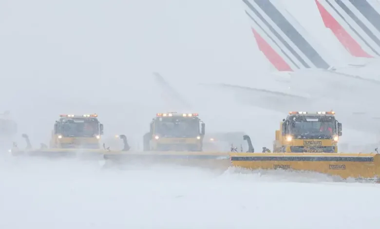 قررت السلطات الفرنسية إلغاء أكثر من مئة رحلة في مطار شارل ديغول و 40 رحلة أخرى في مطار أورلي بسبب الثلوج والصقيع والرياح العاتية.