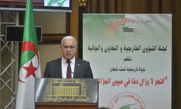 وقال السيد بوغالي في كلمة ألقاها خلال اشرافه على افتتاح أشغال ندوة تاريخية تحت شعار (النهر لايزال دما في عيون الجزائريين) في اطار الاحتفالات المخلدة ليوم الهجرة (17 أكتوبر 1961) أن “الجرائم الإنسانية وحروب الإبادة والتعذيب والتشريد والتهجير لا يمكن أن تموت بالتقادم ، ولا بالمرواغات ولا باستغباء الشعوب ولا بالخرجات غير المسؤولة التي لا تقيم وزنا للتاريخ بل وتسعى للتضليل والتشوية والسطو على الحقائق والوقائع والأحداث الثابتة والتي جف فيها القلم وطويت فيها الصحف”.
