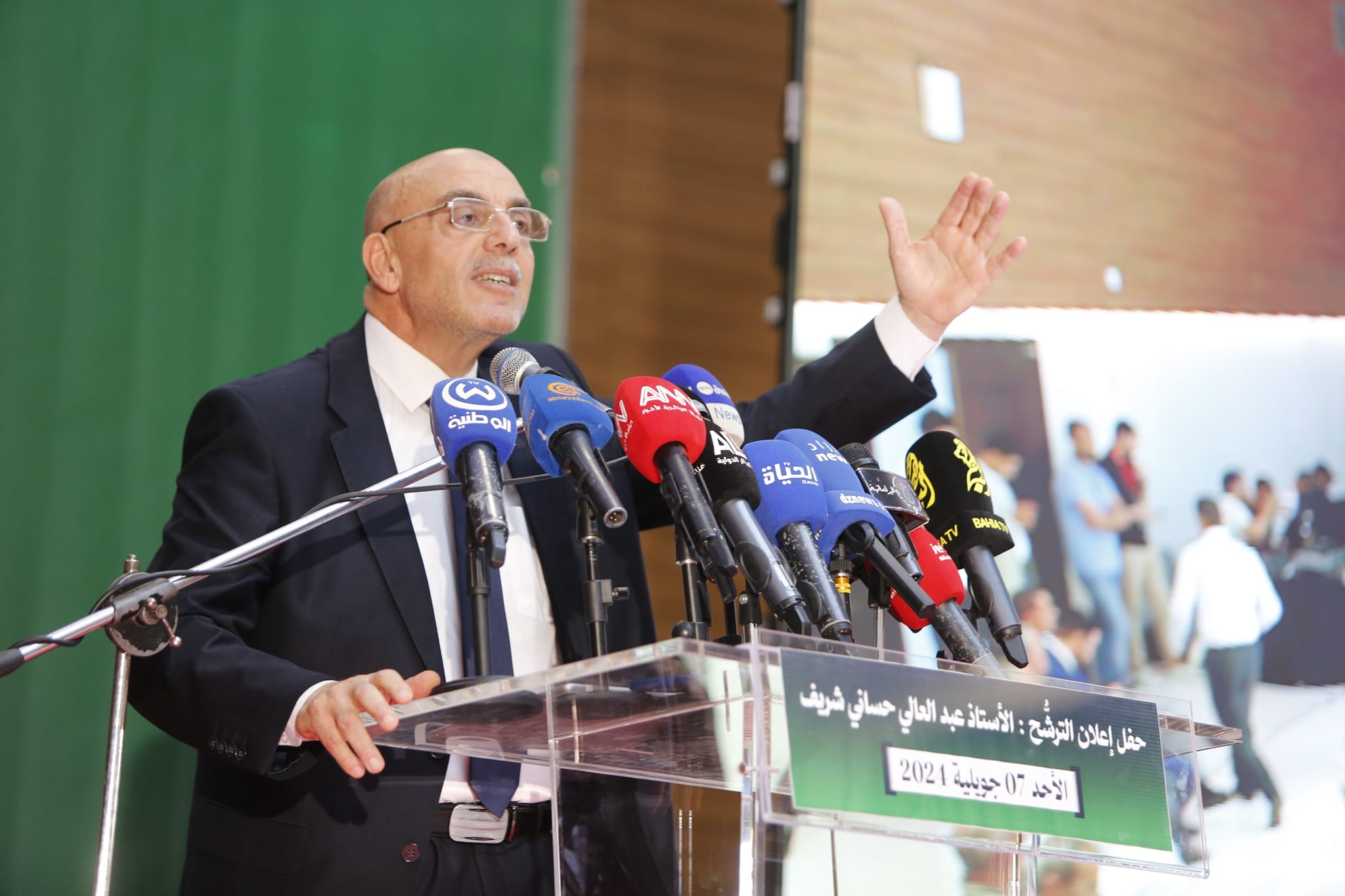 وفي كلمة له خلال لقاء خصص للإعلان عن ترشحه لرئاسيات 7 سبتمبر، قال حساني شريف ان مشاركته في الانتخابات الرئاسية المقبلة تعد “واجبا ومسؤولية وطنية”، معتبرا أن الانتخابات الرئاسية المقبلة تشكل فرصة لتشكيلته السياسية للعمل من أجل “ترقية الممارسة السياسية وتقديم برنامج يراعي البعد الوطني ويعمل على تكريس إصلاحات سياسية واجتماعية واقتصادية”.