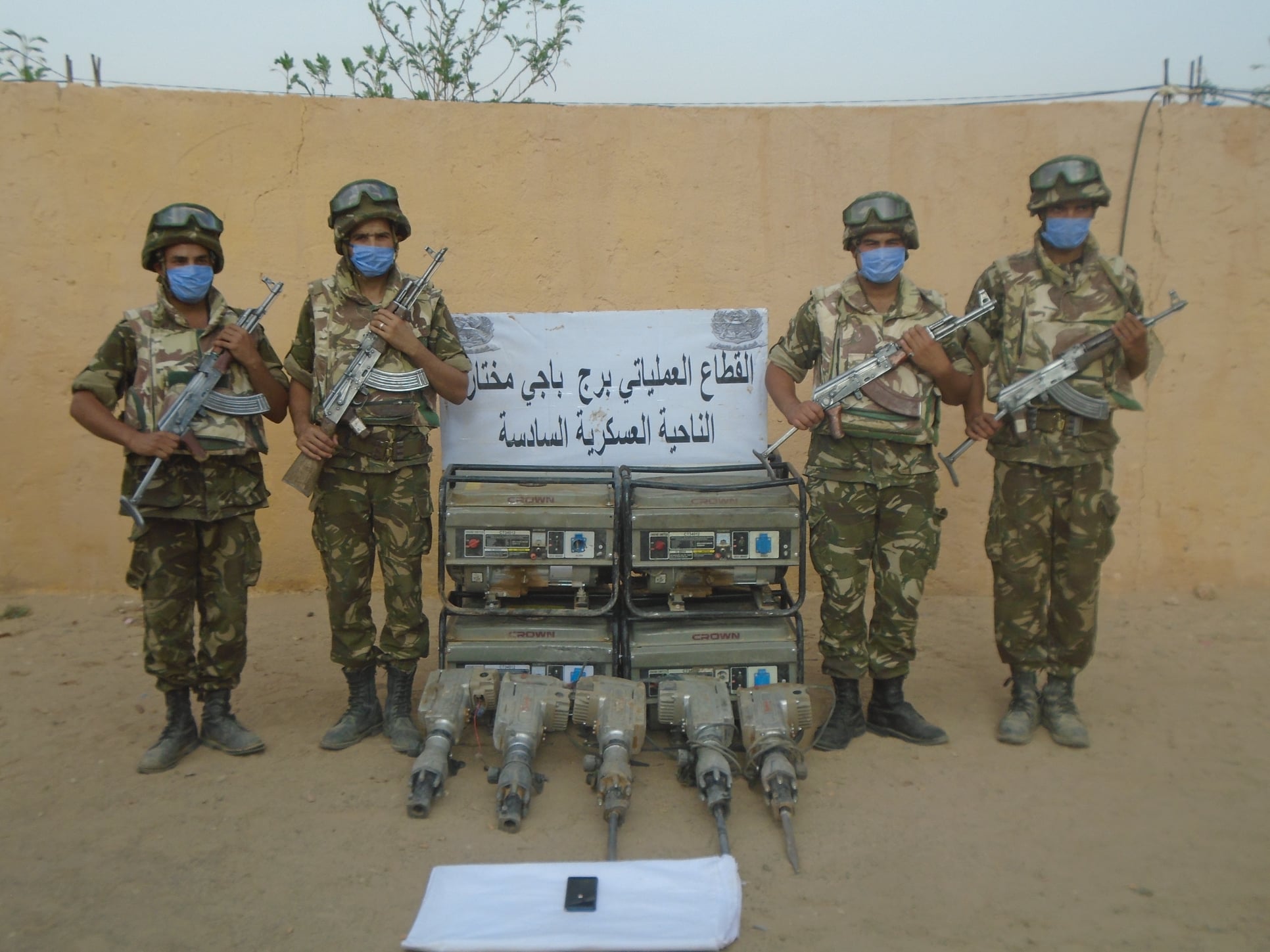وفي سياق آخر -يضيف البيان- “أوقفت مفارز للجيش الوطني الشعبي بكل من تمنراست وعين قزام وبرج باجي مختار وجانت وتندوف (196) شخصا وضبطت (20) مركبة و(192) مولدا كهربائيا و(102) مطرقة ضغط و(06) أجهزة للكشف عن المعادن ومتفجرات ومعدات تفجير وتجهيزات أخرى تستعمل في عمليات التنقيب غير المشروع عن الذهب و(15) طنا من المواد الغذائية الموجهة للتهريب”.