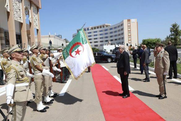 وكان رئيس الجمهورية قد وصل قبل ذلك الى النادي الوطني للجيش، حيث كان في استقباله الوزير المنتدب لدى وزير الدفاع الوطني، رئيس أركان الجيش الوطني الشعبي، الفريق أول السعيد شنقريحة. واستعرض رئيس الجمهورية، تشكيلة عسكرية أدت له التحية الشرفية قبل أن يصافح ضباط سامين في الجيش الوطني الشعبي.
