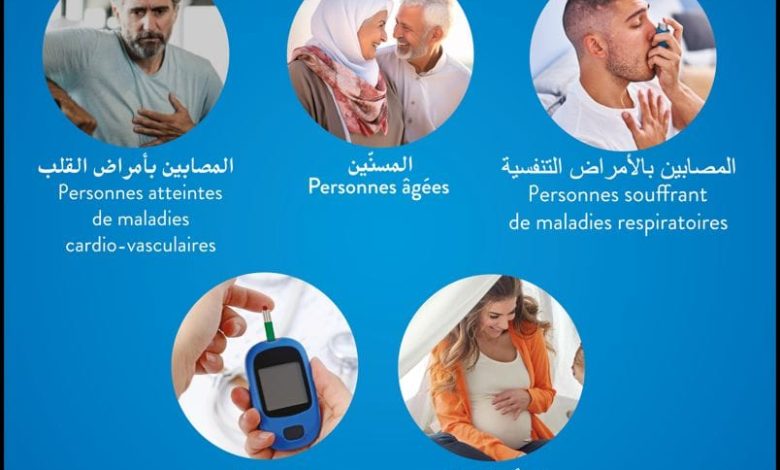 وشددت الوزارة على ضرورة تلقيح الفئات الأكثر عرضة لخطر الإصابة بالمضاعفات، ويتعلق الأمر بالأشخاص البالغين 65 سنة فما فوق والأشخاص الذين يعانون من أمراض مزمنة.