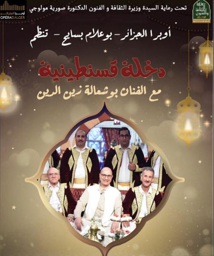 واستهل الحفل الفني الموسوم “دخلة قسنطينية”, الذي افتتح اولى سهرات برنامج أوبرا الجزائر لإحياء ليالي شهر رمضان الكريم، بأداء الفنان زين الدين بوشعالة لمجموعة من التهليلات العيساوية و الحضرة ومقتطفات سماع صوفي وفن الديوان اخذت الجمهور إلى عالم روحي مميز على غرار ” بجاه الله جيناكم”، ” في حق الرسول محمد شفيعنا” ،” فاضت الأشواق”، “ربي المعبود” ، “عالي القدرة داويني نبرا “، ” ياصاحب اللواء والخاتم” و” يا حجاج “.