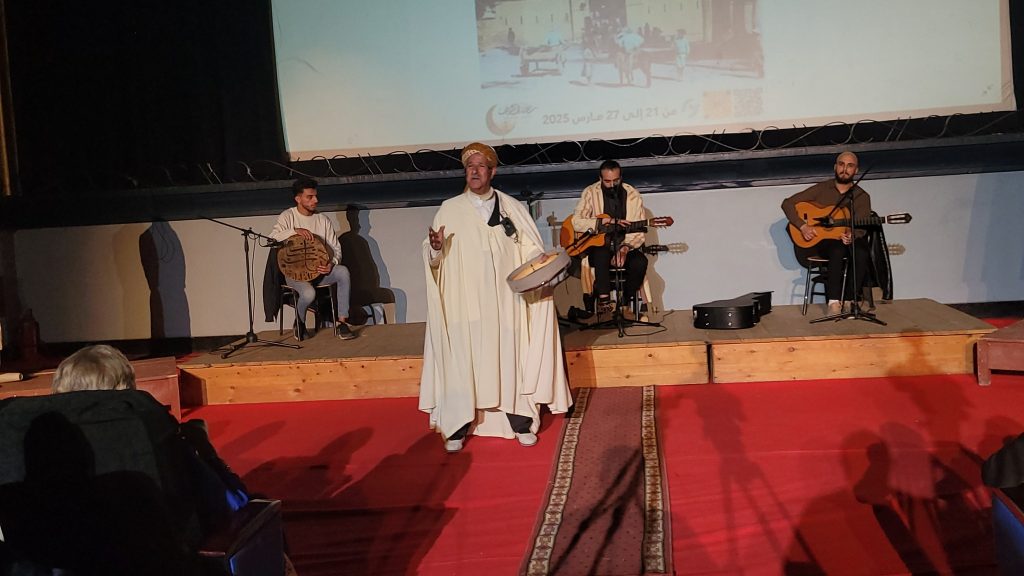 وعرفت السهرة الافتتاحية التي احتضنتها قاعة سينما العمارنة مرور كل من الحكواتي محمد حاج إبراهيم من غرداية والحكواتية نعيمة محايلية من الجزائر العاصمة والحكواتي قادة بن شمسية من سيدي بلعباس الذين أبدعوا بأسلوبهم المتميز في السرد بسحر كلمات تأخذ المستمع في رحلة عبر الزمن من خلال قصص تختلج الصدور وتزرع الأمل وتنسج عوالم من الخيال ناقلة التراث الجزائري المتفرد.