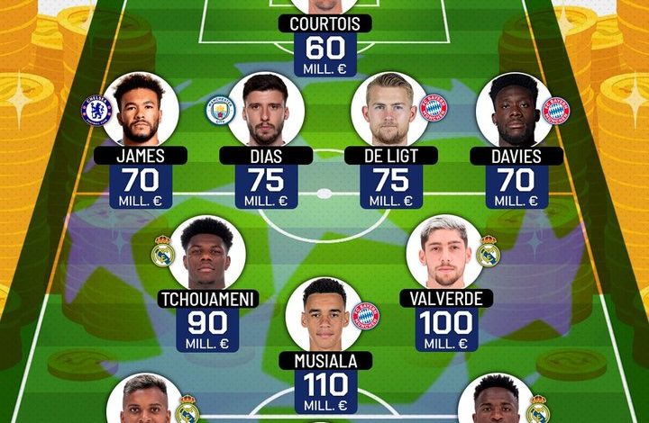 ونشر الحساب الرسمي لصحيفة “ماركا” الإسبانية عبر موقع التواصل الاجتماعي تويتر، تشكيلة اللاعبين المشاركين في ربع نهائي الأبطال الأعلى قيمةً سوقيةً، بمبلغ إجمالي يصل إلى نحو 1.02 مليار يورو.