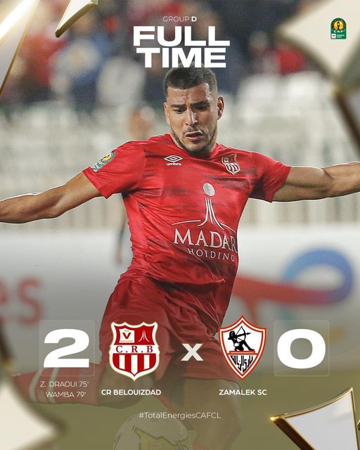 حقق شباب بلوزداد فوزا مهما على حساب الزمالك المصري بنتيجة 2-0، على ملعب “5 جويلية” لحساب الجولة الخامسة من مسابقة دوري أبطال أفريقيا، ليحجز مقعده في الدور ربع النهائي قبل جولة الختام، فيما فقد الفريق المصري حظوظه في التأهل.