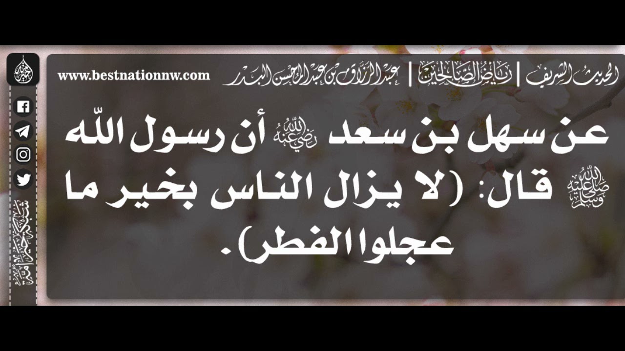 عن سهل بن سعد الساعدي رضي الله عنه أن رسول الله صلى الله عليه وسلم قال: «لا يزال الناس بخير ما عجَّلوا الفطر».