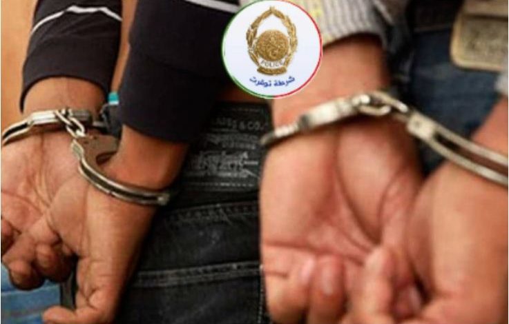 تمكنت مصالح أمن ولاية توقرت ممثلة في المصلحة الولائية للشرطة القضائية بحر هذا الأسبوع من توقيف شخصين في العقد الثاني من العمر، ومعالجة قضية حيازة كمية من مخدرات (كيف معالج) ومؤثرات عقلية ومواد صيدلانية ذات خصائص مؤثرات عقلية بطريقة غير مشروعة لغرض البيع والمتاجرة، التهديد بالاعتداء بسلاح أبيض على رجال القوة العمومية أثناء تأدية المهام، حسب بيان للهيئة الأمنية.