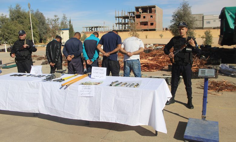 العملية التي تمت تحت إشراف النيابة المختصة إقليميا، أسفرت عن ضبط واسترجاع 79 قنطار من مادة النحاس؛ 04 شاحنات كانت تستعمل في نقل المسروقات ووسائل خاصة بالتقطيع وتذويب مادة النحاس.