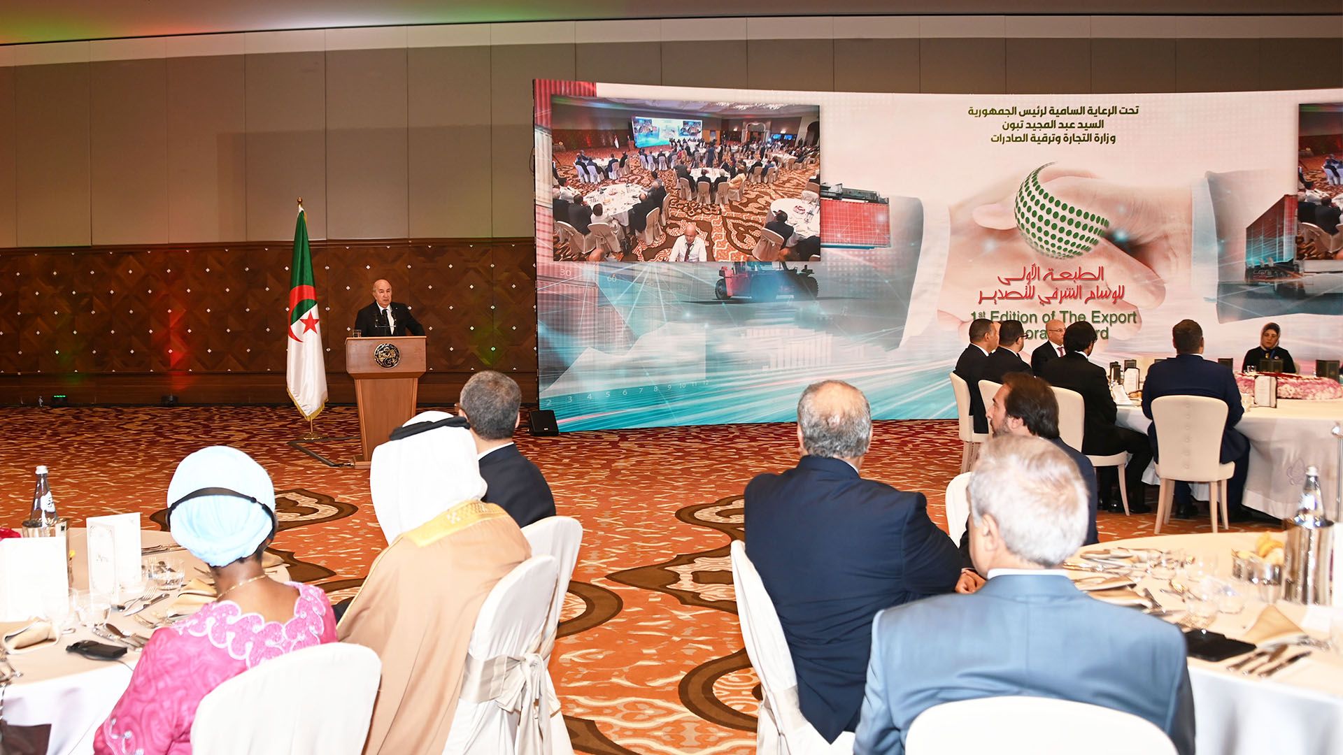 وفي كلمة بمناسبة اشرافه على افتتاح الطبعة الأولى ل “الوسام الشرفي للتصدير” التي أقيمت تحت شعار “التزام، إنجازات وآفاق” صرح رئيس الجمهورية قائلا: “أطلب من السيد الوزير الأول تنصيب، في اقرب وقت، المجلس الأعلى للتصدير الذي يتكفل بكل مشاكل المصدرين والحوافز والتسهيلات الموجهة لهم”.