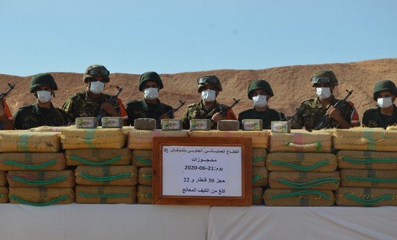 وأوضح المصدر ذاته أنه “في إطار محاربة التهريب والجريمة المنظمة ومواصلة للجهود الحثيثة الهادفة لصد ظاهرة الاتجار بالمخدرات ببلادنا، ضبطت مفرزة مشتركة للجيش الوطني الشعبي، يوم 21 جوان 2020، كمية ضخمة من الكيف المعالج تقدر بـ 03 أطنان و22 كيلوغراما، وذلك إثر دورية بحث وتفتيش قرب أم العشار، بتندوف بالناحية العسكرية الثالثة”.