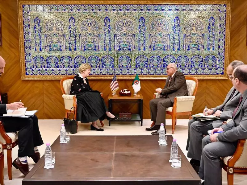 وسمح اللقاء, حسب البيان, باستعراض مختلف جوانب العلاقات الجزائرية-الأمريكية, مع تسليط الضوء على التقدم المحرز في تجسيد عدد من مشاريع الشراكة الثنائية في المجالات الاقتصادية.