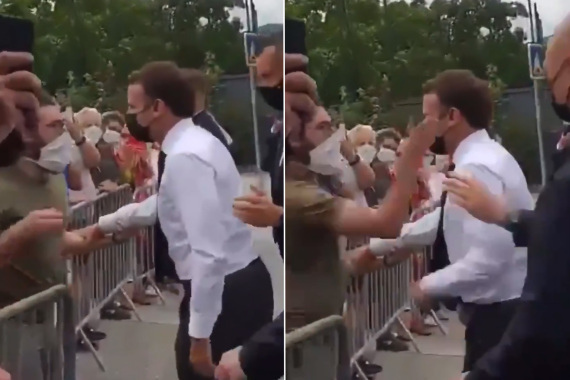 وانتشر كالنار في الهشيم فيديو جرى تداوله على مواقع التواصل ووسائل الإعلام الفرنسية، ويظهر فيه رجل يرتدي قميصا أخضر ونظارة وكمامة وهو يهتف “تسقط الماكرونية” ثم يوجه إلى ماكرون صفعة على الوجه.