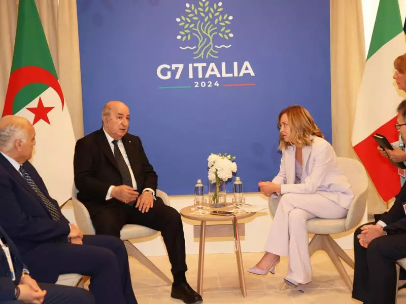 قمة مجموعة الـ7 لكبار المصنعين في العالم: رئيس الجمهورية يلتقي رئيسة وزراء إيطاليا التقى رئيس الجمهورية, السيد عبد المجيد تبون, هذا السبت, رئيسة وزراء إيطاليا, جورجيا ميلوني, وذلك بقلعة بورجو إغناسيا المحتضنة لقمة السبعة الكبار