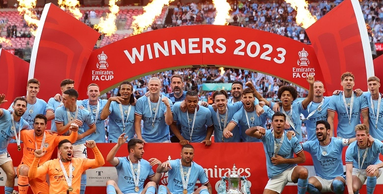 وتفوق مانشستر سيتي على جاره يونايتد في نهائي كأس الاتحاد الإنجليزي بنتيجة 2-1 ليضيف لقب الكأس إلى لقب الدوري الإنجليزي الذي أحرزه بعد سباق مثير مع أرسنال.