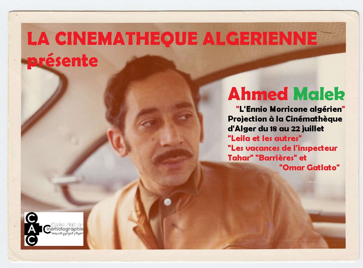 يقوم متحف سينما الجزائر بتكريم الموسيقار أحمد مالك الذي رحل عن عالمنا في 20 جويلية من سنة 2008، وذلك عرفانا بما قدمه للفن الجزائري من روائع بقيت تشكل ذاكرة جماعية لكل الجزائريين من أهمها “عطلة المفتش الطاهر” و”عمر قتلاتو” و “ليلى والآخرون” و”برير”، من خلال عرض مجموعة من الأفلام إلى غاية 22 جويلية الجاري.