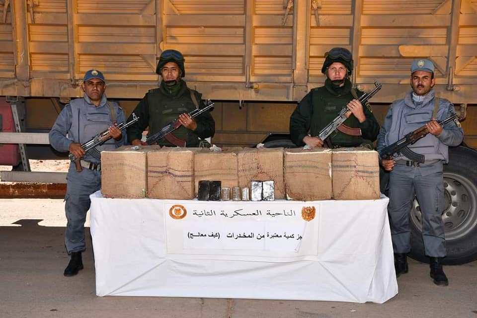 وفي إطار “محاربة الجريمة المنظمة ومواصلة للجهود الحثيثة الهادفة إلى التصدي لآفة الاتجار بالمخدرات ببلادنا، أوقفت مفارز مشتركة للجيش الوطني الشعبي، بالتنسيق مع مختلف مصالح الأمن خلال عمليات مختلفة عبر النواحي العسكرية، 46 تاجر مخدرات وأحبطت محاولات إدخال كميات كبيرة من المخدرات عبر الحدود مع المغرب تقدر بـ5 قناطير و58 كيلوغرام من الكيف المعالج وضبطت 102308 قرص مهلوس”.
