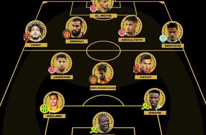 خط الوسط: حمدي فتحي “الأهلي” – محمد علي بن رمضان “الترجي التونسي” – يحيى جبران “الوداد المغربي”