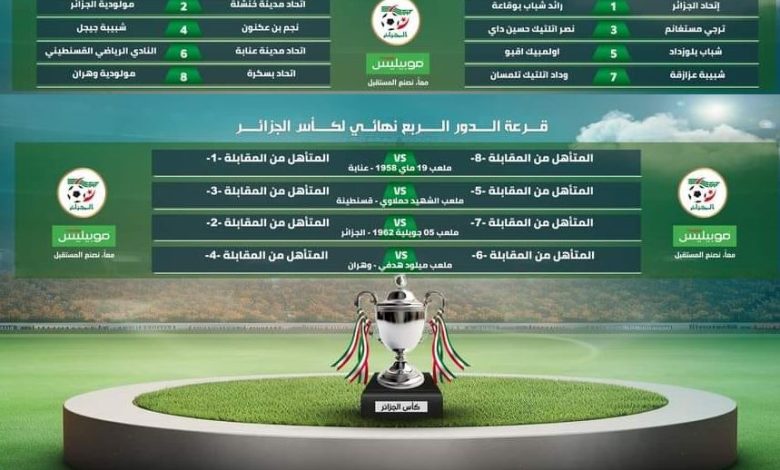 نتائج عملية القرعة للدورين الثمن والربع النهائيين : مولودية الجزائر يصطدم باتحاد خنشلة في ثمن نهائي كأس الجزائر
