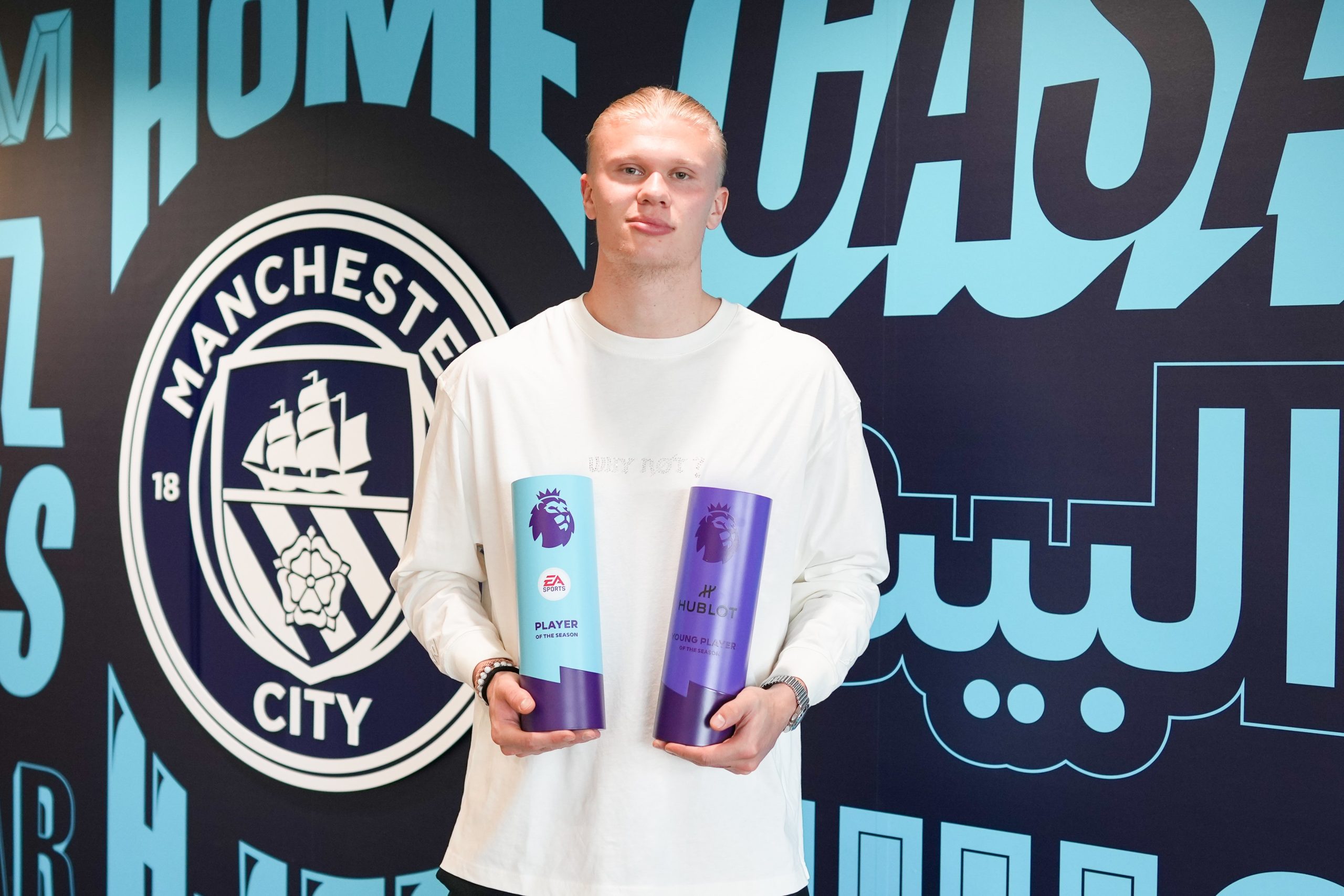 يلعب هالاند أول مواسمه على الإطلاق مع مانشستر سيتي بعد أن وفد في صيف 2022 من بوروسيا دورتموند الألماني، وقد تمكّن من حصد كل الجوائز الفردية الممكنة، وتحطيم الأرقام القياسية البارزة، فضلًا عن الجمع بين ثنائية الدوري والكأس المحليتين.