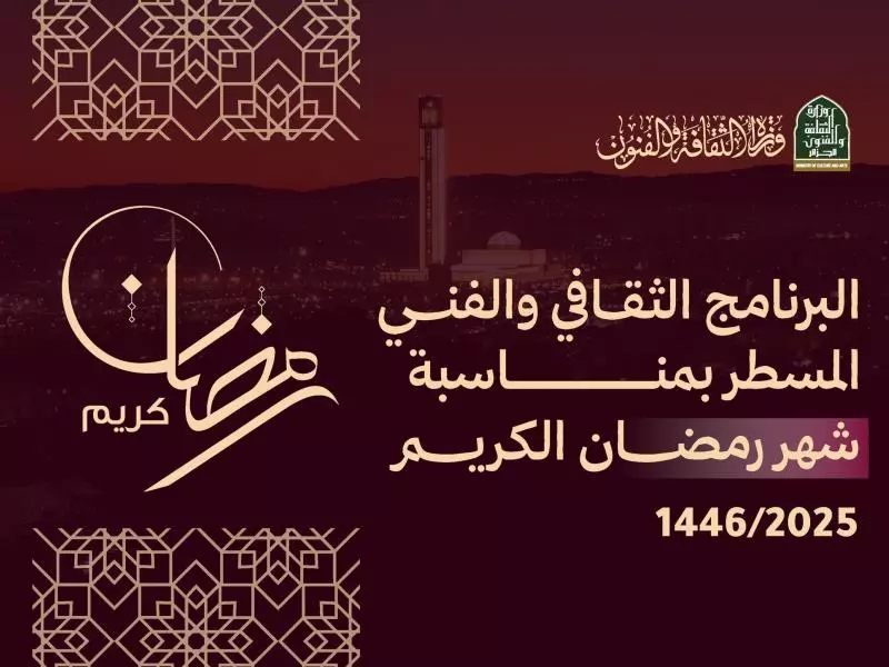 كشفت وزارة الثقافة والفنون، اليوم الاثنين، عن البرنامج الثقافي والفني للقطاع المسطر عبر كامل التراب الوطني، من طرف كل المديريات الولائية والمؤسسات الثقافية تحت الوصاية، بمناسبة إحياء الليالي الثقافية لشهر رمضان الكريم.