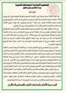 وأوضحت وزارة المجاهدين في بيان، أنها لن تتوانى في اتخاذ كافة الإجراءات القانونية، ضد كل من يتجرأ على رموز التاريخ الوطني، والمآثر المجيدة من خلال التأسيس كطرف مدني في الدعاوي القضائية المرفوعة في هذا الشأن.