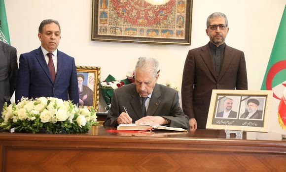 وقع رئيس مجلس الأمة السيد صالح قوجيل, بتكليف من رئيس الجمهورية السيد عبد المجيد تبون يوم الخميس بمقر السفارة الإيرانية بالجزائر العاصمة, على سجل التعازي إثر وفاة الرئيس الإيراني إبراهيم رئيسي ووزير الشؤون الخارجية حسين أمير عبد اللهيان والمرافقين لهما.