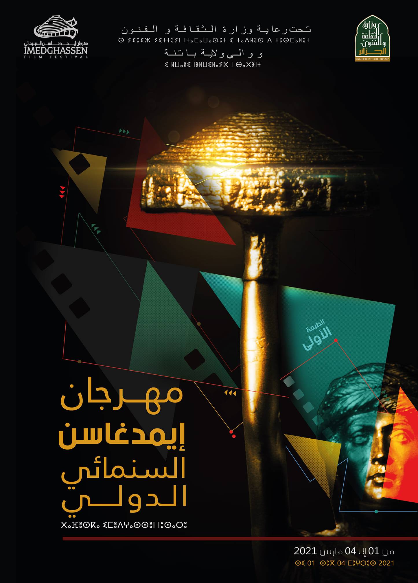 وعن الدرع الرسمي لمهرجان ايمدغاسن السينمائي الدولي باتنة، قال بأنه من تصميم النحات عبد الرزاق بوسكار وهو يمثل الملكة ديهيا التي تعبر عن المرأة الشاوية الاوراسية، حيث تلبس لباس شاوي “ملحفة” والمرصعة أيضا بحلي شاوي وتضع برنوس على أكتافها ويلفها في أسفل رجليها، وتحمل في يدها اليمنى تاريخها “ضريح ايمدغاسن” ترفعه للسماء، وأيضا تحمل سيف شاوي بيدها اليسرى للدفاع على تاريخها العريق، وتضع عمامة على رأسها، مضيفا أن لون المجسم أو الدرع الرسمي ذهبي ناصع، ويحتوي على قاعدة اسطوانية سوداء مكتوب فيها اسم المهرجان وتقف عليها الملكة، المادة المصنوعة منه هو الأريزين وهي مادة صلبة تصنع منها المجسمات والدروع.