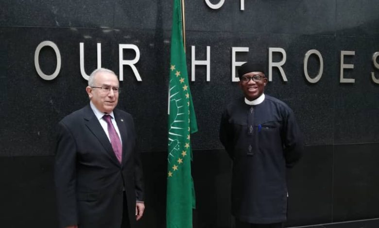 التقى وزير الشؤون الخارجية، رمطان لعمامرة، مفوض الإتحاد الإفريقي للشؤون السياسية وقضايا السلم والأمن، بانكولي أديوي.