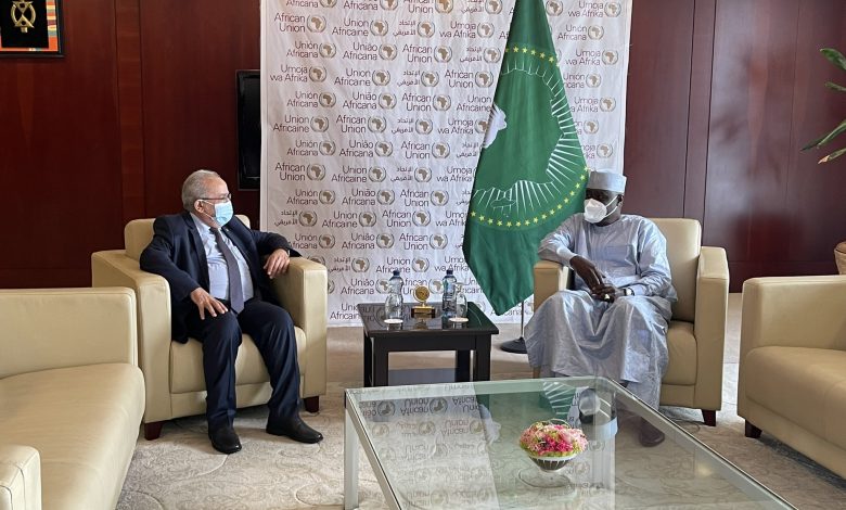 Meeting the Chairperson of the AU Commission, Moussa Faki Mahamat, to exchange views on the main items included in the draft agenda of the 39th session of the AU Executive Council. pic.twitter.com/JQm9LT0Ptu
