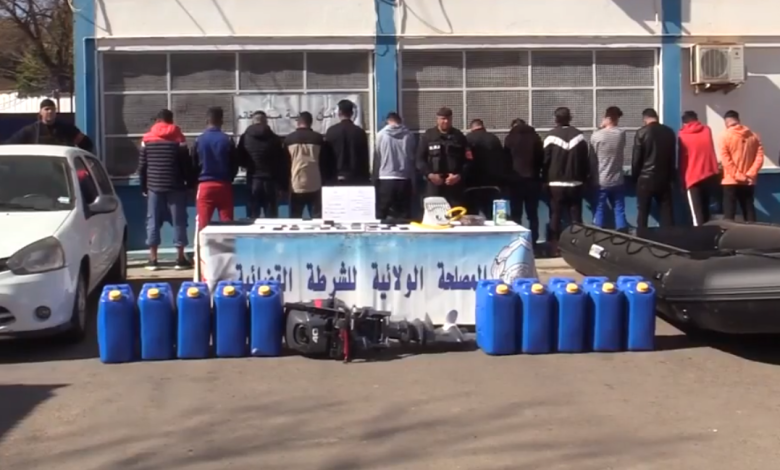 وبعد إخطار وكيل الجمهورية المختص إقليميا بالوقائع تنقلت الشرطة إلى عين المكان وأوقفت 15 شخصا من بينهم قاصرين اثنين مع حجز قارب مطاطي مزود بمحرك و10 دلاء من سعة 30 لترا مملوءة بمادة البنزين ومجذافين ومضخة هوائية فضلا عن سيارة كان يستخدمها المشتبه فيهم، حسب ذات المصدر.