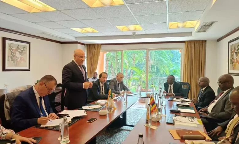 تحادث وزير التجارة وترقية الصادرات, الطيب زيتوني, اليوم الجمعة, بالعاصمة الأوغندية كامبالا, مع وزير التجارة والصناعة والتعاون الأوغندي, فرانسيس مويبيسا, سبل تعزيز التعاون الثنائي بين البلدين، بمناسبة زيارة العمل التي تقوده إلى أوغندا على رأس وفد هام من رجال الأعمال.